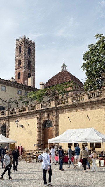 I was privileged to visit beautiful and small Lucca on sunny warm Sunday in April. I really enjoyed its small piazzas, churches and Sunday outdoor market, flea market, il mercatino delle pulci (mercato) in several piazzas in the small town centre. The little Tuscan town of Lucca feels like a place where time decided to slow down. Firenze feels often too crowded by tourists, Lucca offered beauty, but also peace and space.